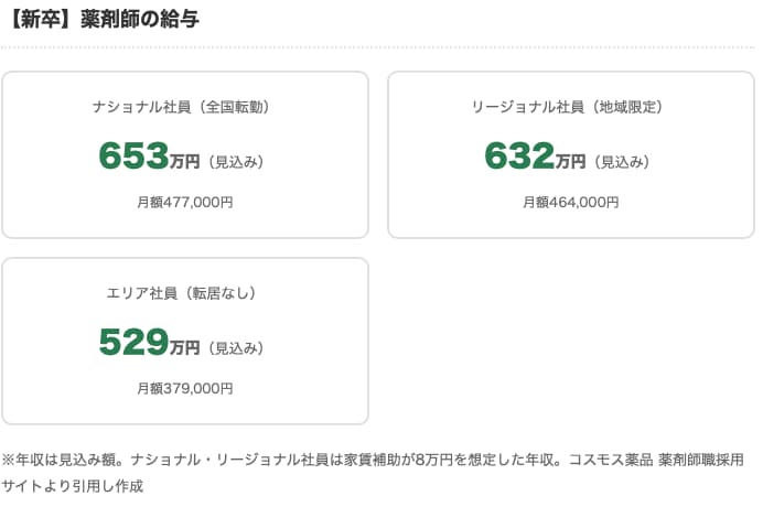コスモス薬品キャリア採用薬剤師給与表です
