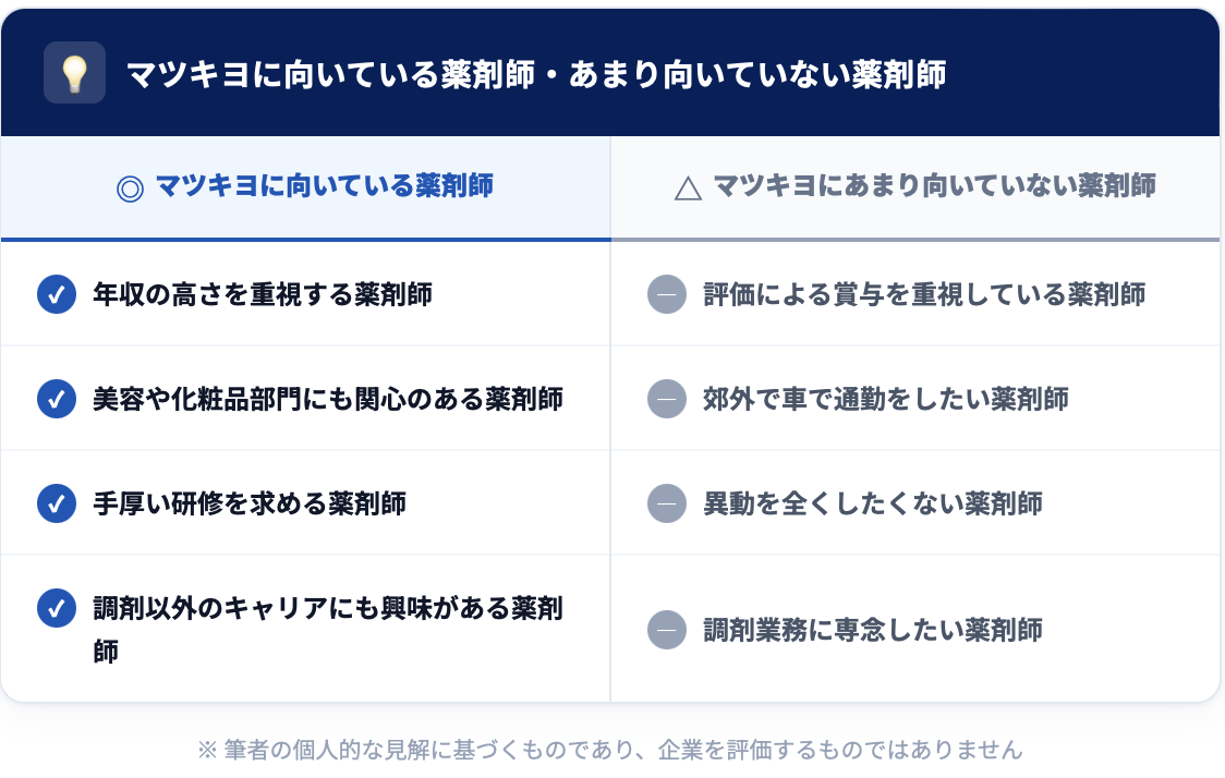 マツモトキヨシが向いている薬剤師・あまり向いていない薬剤師