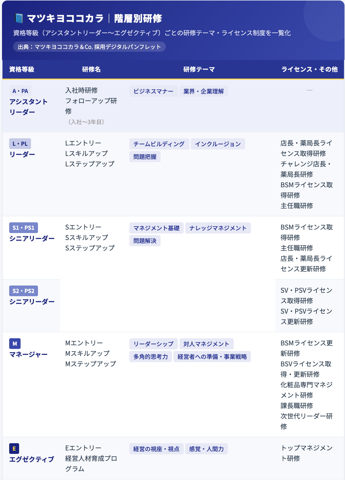 ドラッグストアでもここまで体系的な教育プランとなっている企業は多くないでしょう。